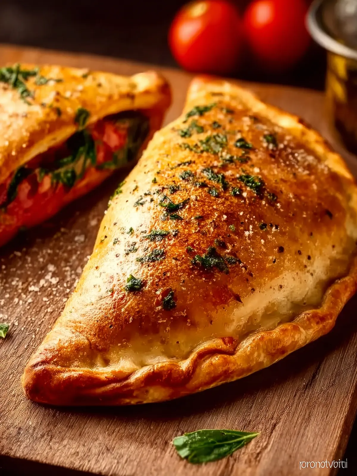 To achieve that stunning golden brown color, brush your calzone with a bit of olive oil and sprinkle on some sea salt before baking. Preheat your oven to a high temperature (around 475°F) to get that crispy finish.