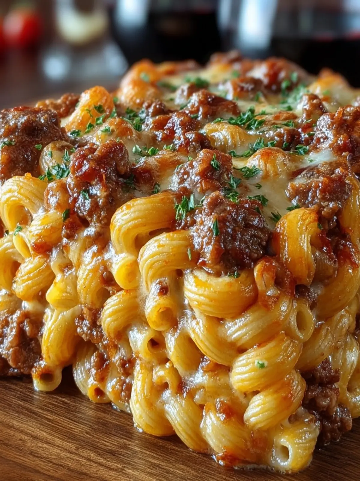 A hearty and delicious casserole made with macaroni, ground beef, and cheese.