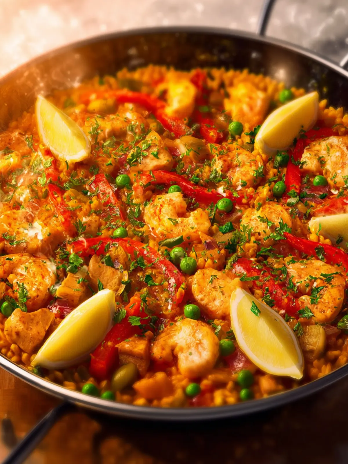 A delicious and vibrant chicken and chorizo paella that’s bursting with flavors and perfect for gatherings.