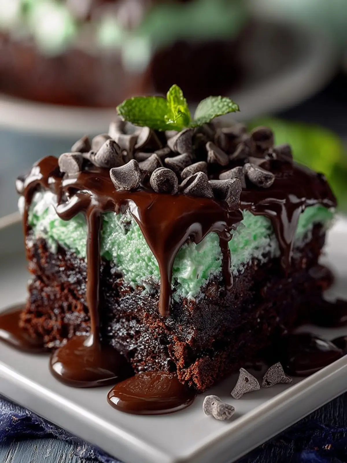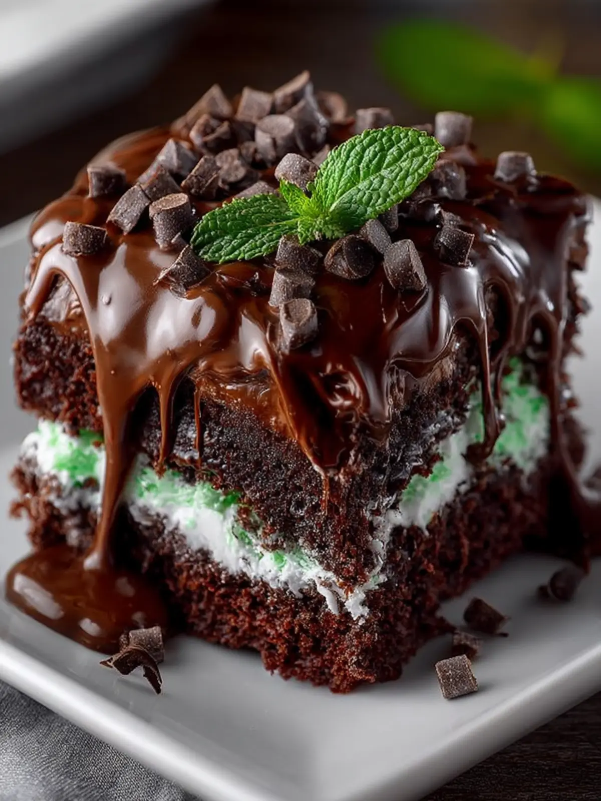 A delicious Chocolate Mint Poke Cake, perfect for chocolate lovers!