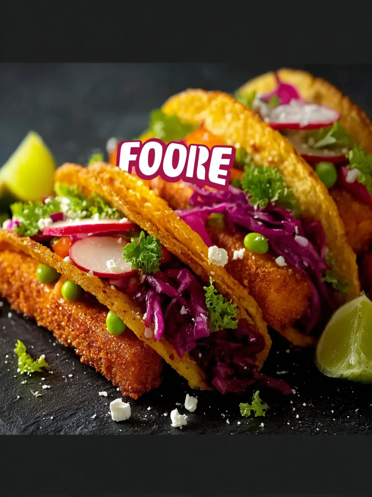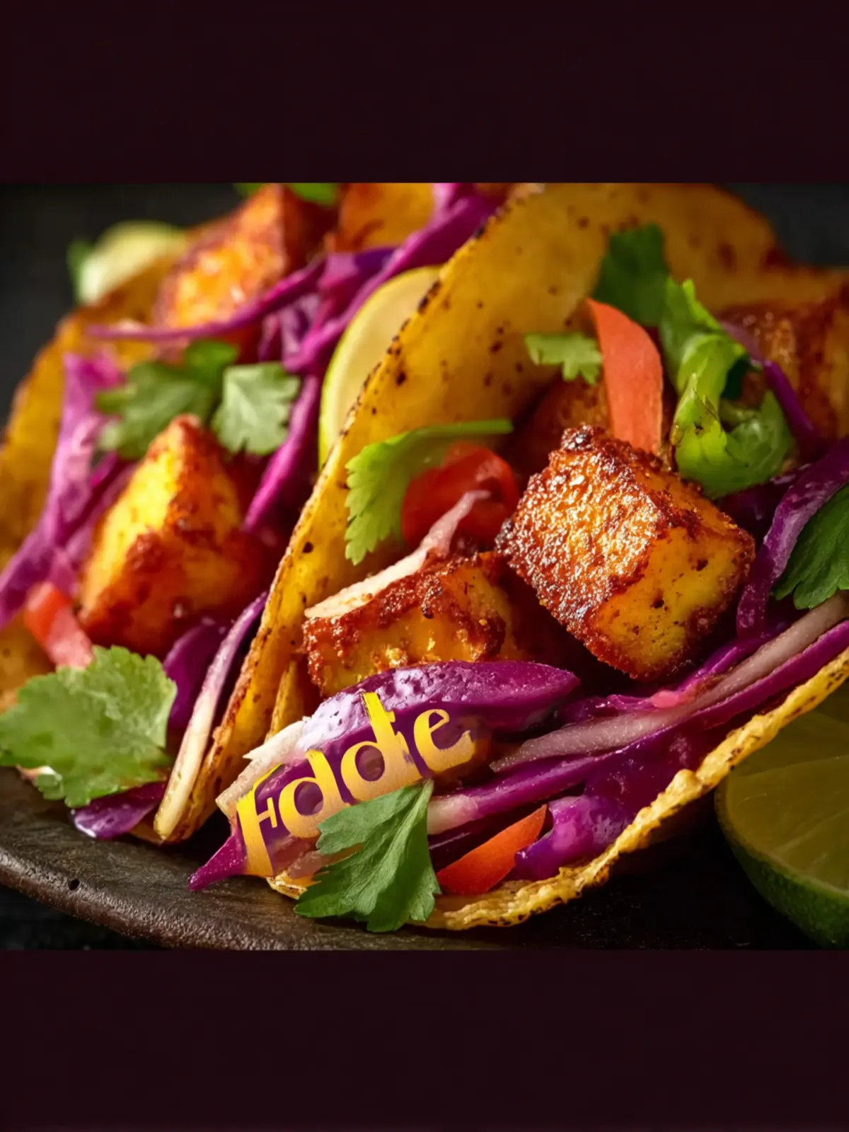 Delicious and nutritious crispy tofu tacos topped with fresh vegetables and a zesty sauce.