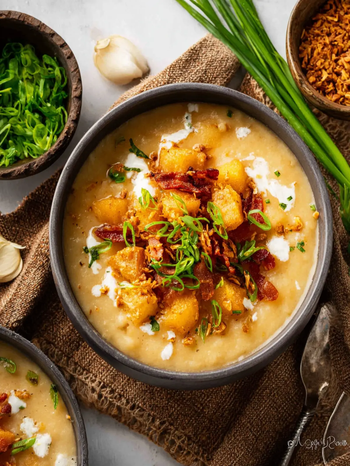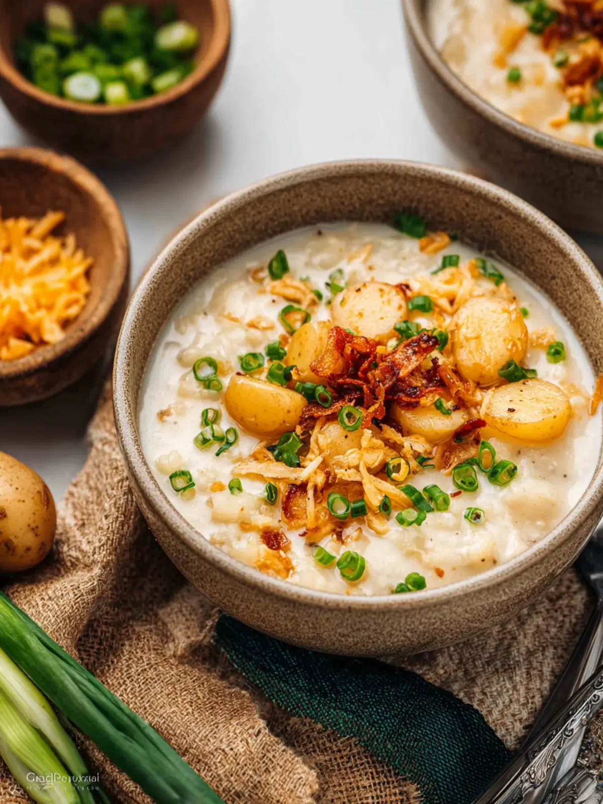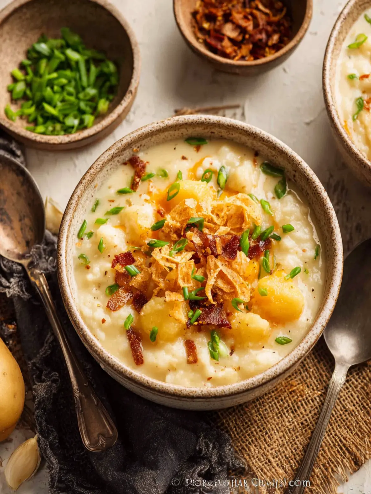 Toppings: Encourage guests to customize their bowls with ingredients like crispy bacon bits, shredded cheese, and chives. These add not only flavor but also a variety of textures.