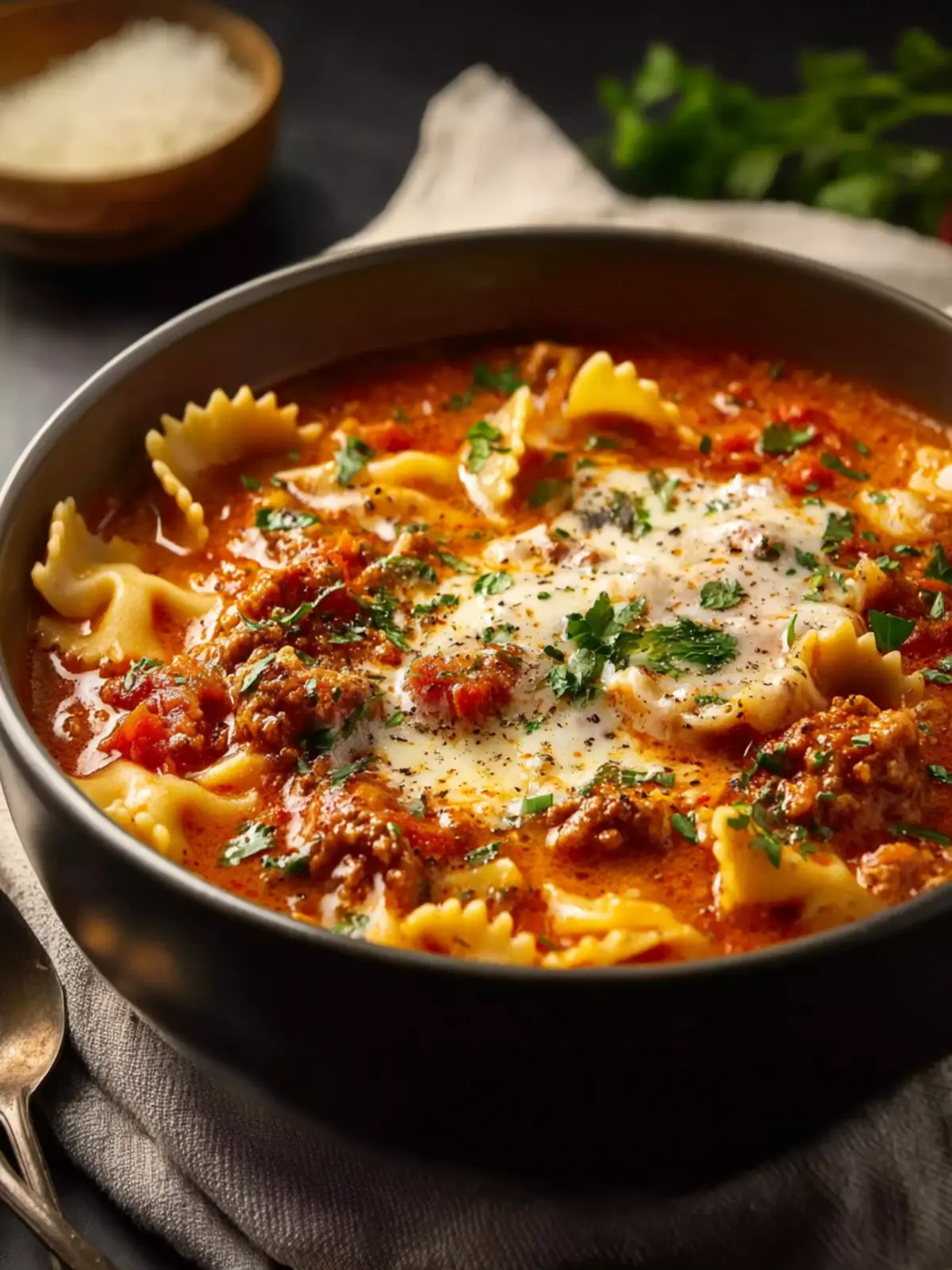 This creamy beef lasagna soup is a hearty and flavorful dish, perfect for a cozy dinner.