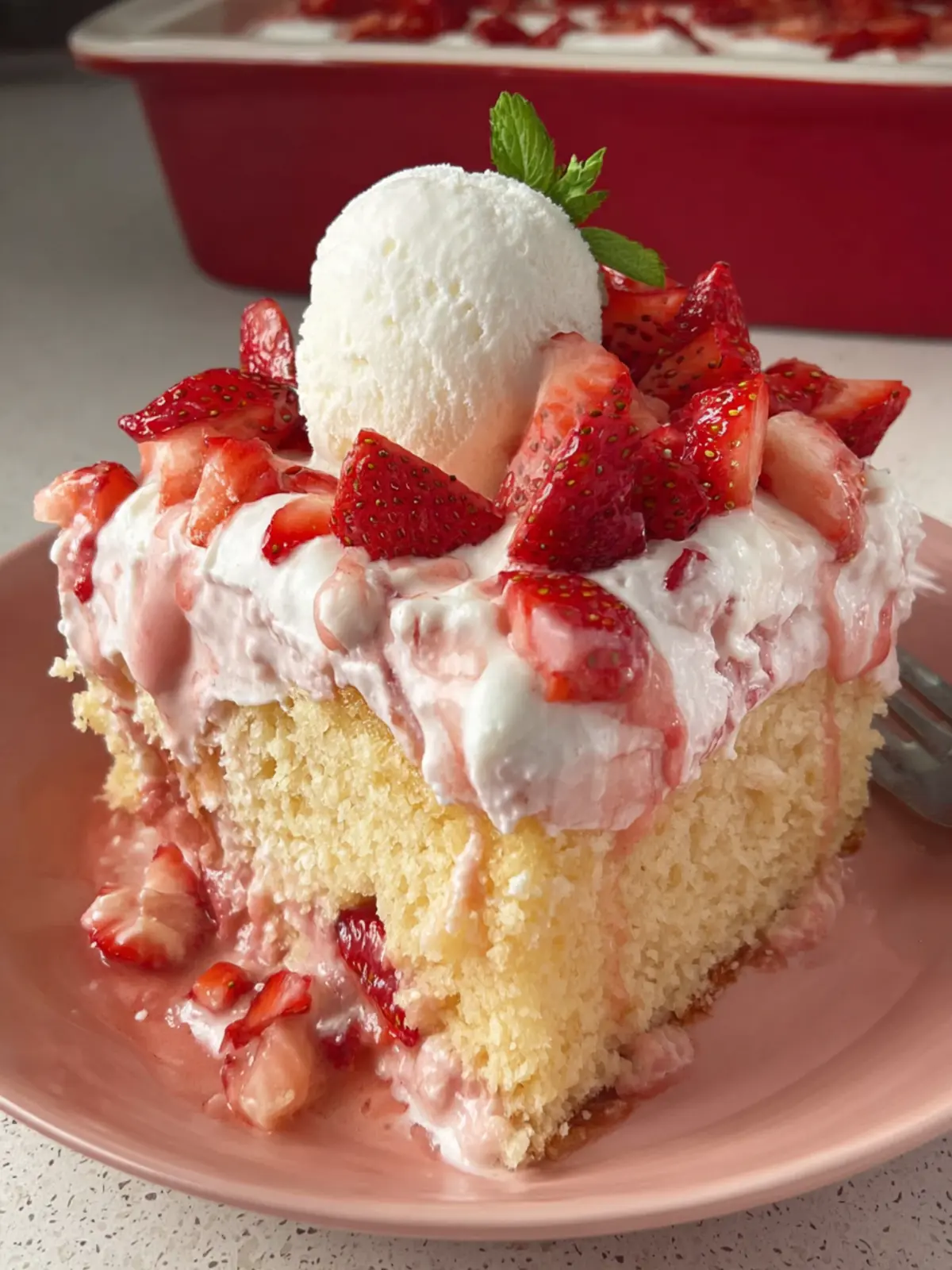 Easy Strawberry Tres Leches Poke Cake (With Strawberry Ice Cream!) First Image