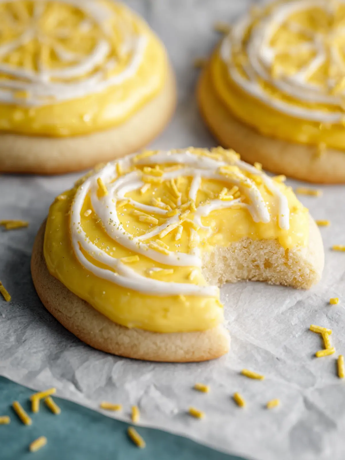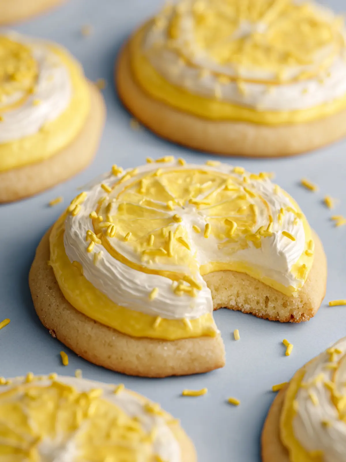- Use an offset spatula to frost each cookie. Top with sprinkles and more lemon zest. Enjoy!