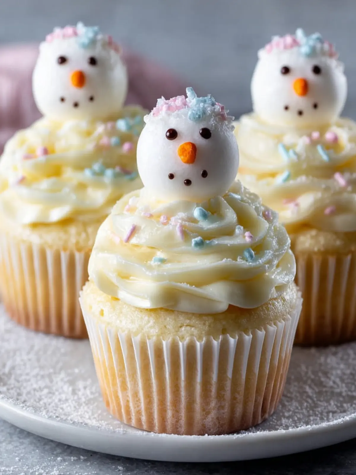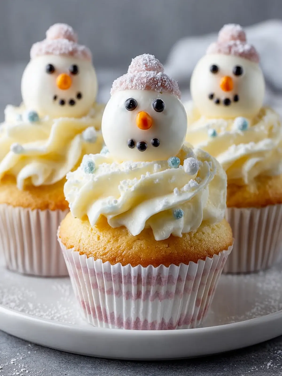 Don’t forget to get creative with decorations! Seasonal touches can really bring your fun snowman cupcakes to life: