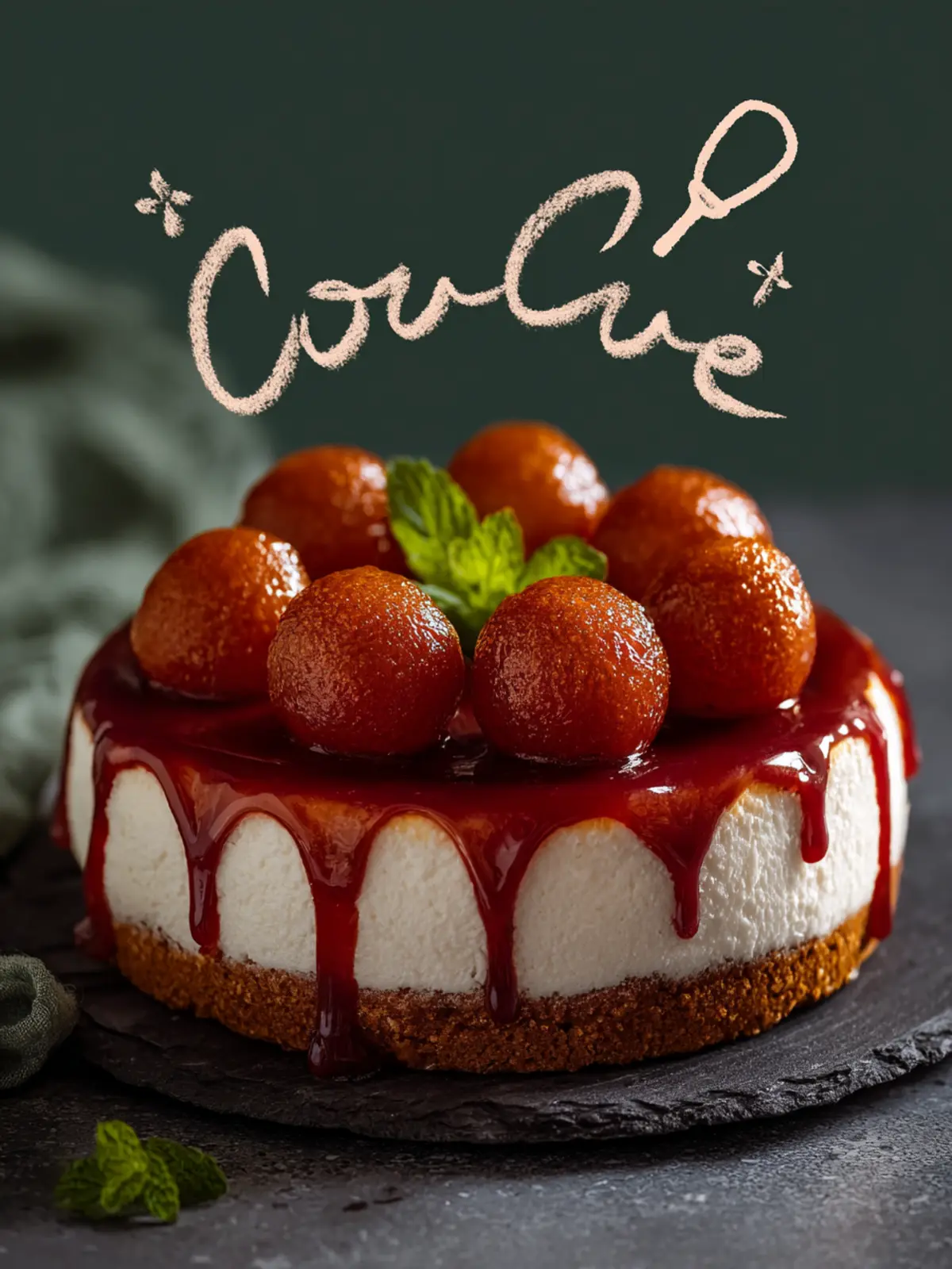 A delicious fusion dessert combining the richness of cheesecake with the iconic Indian sweet, Gulab Jamun.