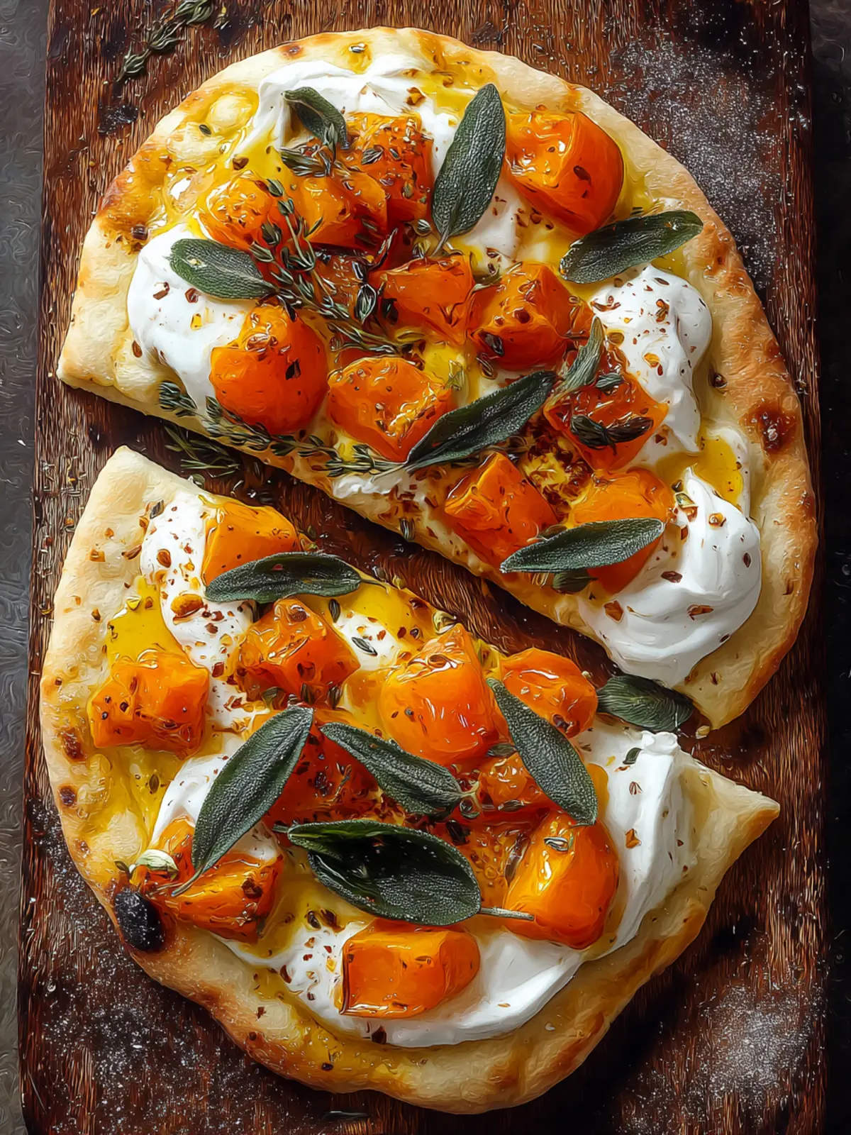 Fresh sage leaves introduce a lovely herbaceous aroma that complements the pumpkin beautifully. When roasted, sage develops a nutty, slightly crispy texture that adds depth to your flatbread and enhances the overall flavor profile.