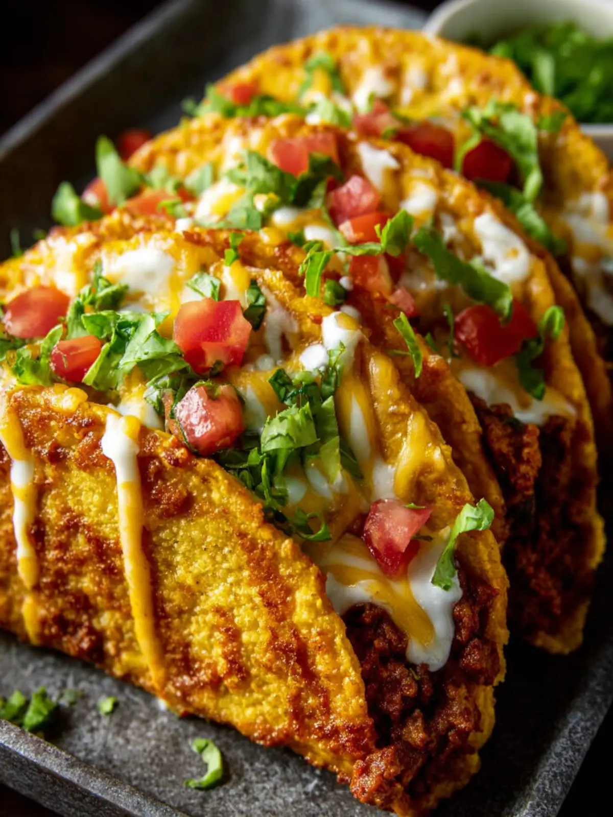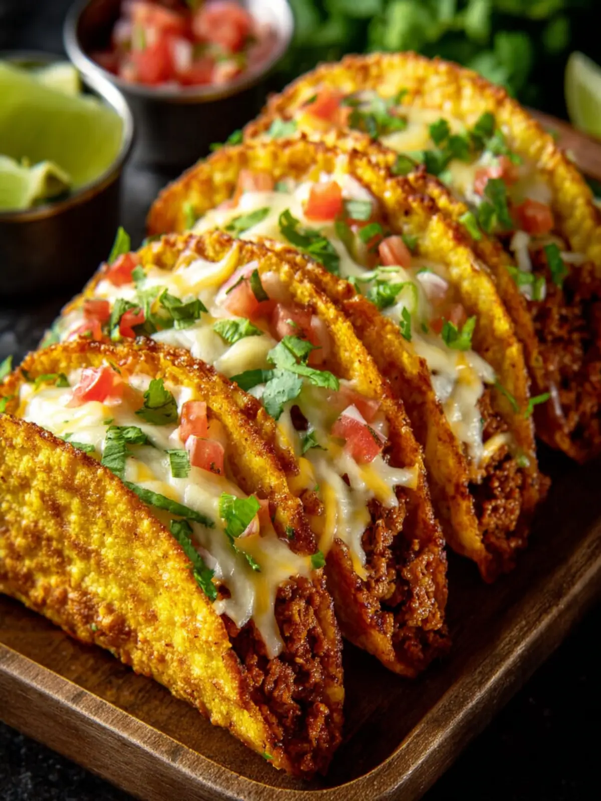 In closing, oven-baked cheesy tacos are not just a meal; they’re a delightful experience that brings everyone together around the dinner table. The combination of crispy taco shells filled with savory meat, zesty spices, and a gooey layer of melted cheese creates a comforting dish that’s hard to resist. Plus, the ease of preparing these tacos makes them perfect for busy weeknights or casual gatherings with friends. Why settle for ordinary when you can elevate taco night into something truly special? Try these out tonight, and watch your loved ones savor each bite as they enjoy the deliciousness!