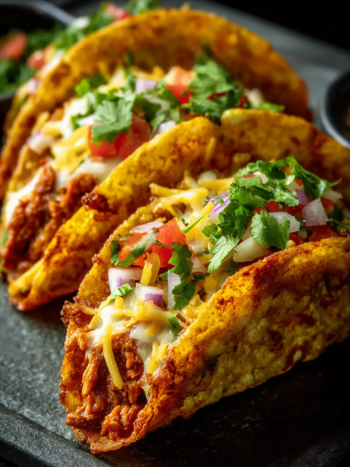 • Cheesy Goodness: Who can resist the allure of gooey, melted cheese? As the tacos bake in the oven, the cheese combines with the flavors of your chosen fillings, creating a comforting, savory experience that satisfies.