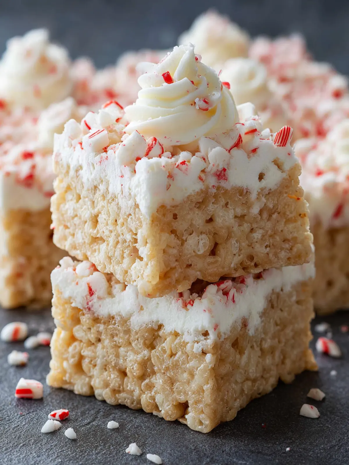 Delicious no-bake crispy rice treats infused with the holiday flavors of peppermint and candy canes.
