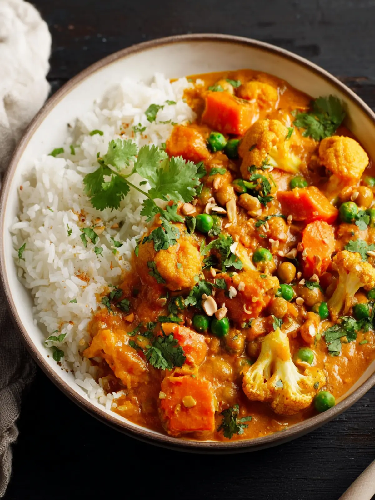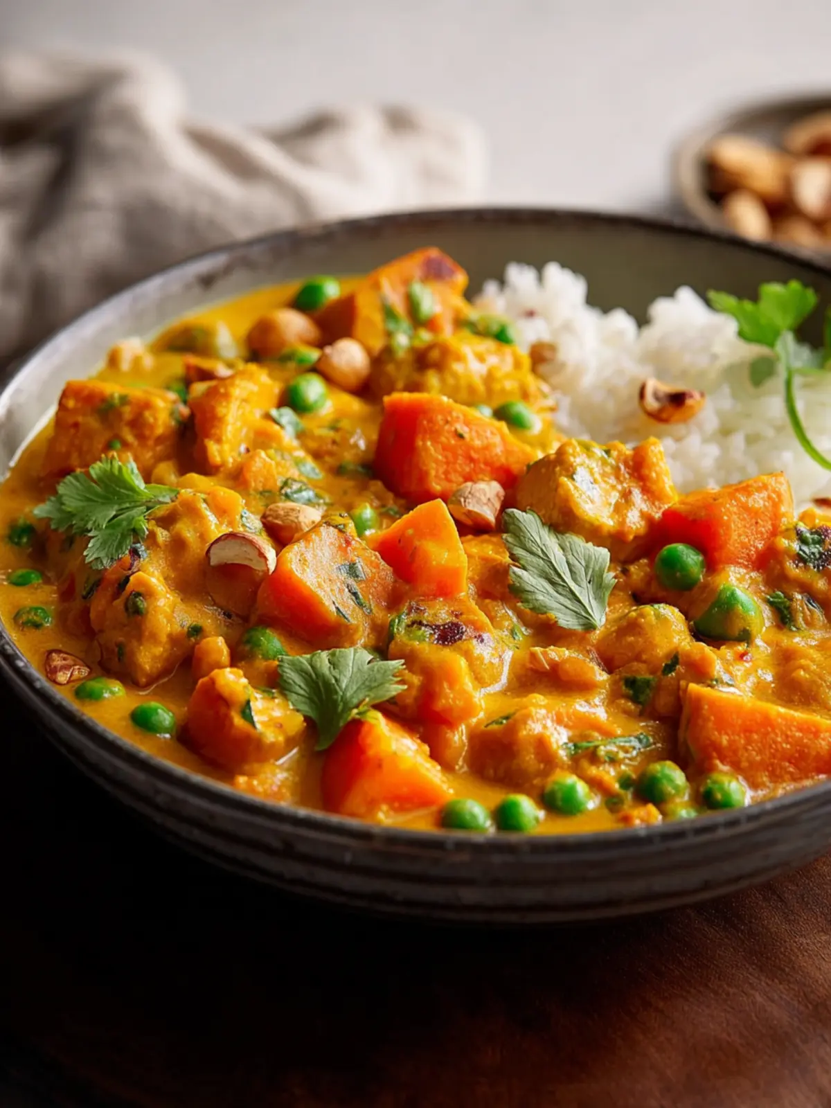 A delicious and creamy vegetable korma made with a variety of vegetables and cashew cream.