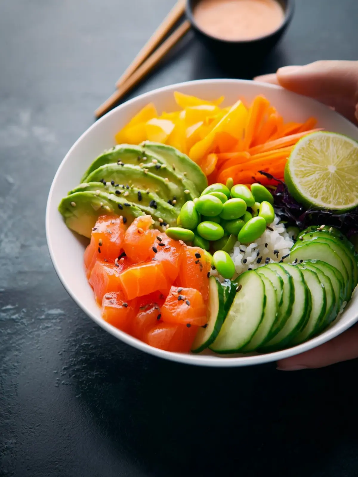 Bring life to your bowls with an array of fresh vegetables! Think crisp cucumbers, creamy avocado, and vibrant bell peppers. Not only do they add essential vitamins, but their crunch also creates a satisfying contrast to the softness of the rice.